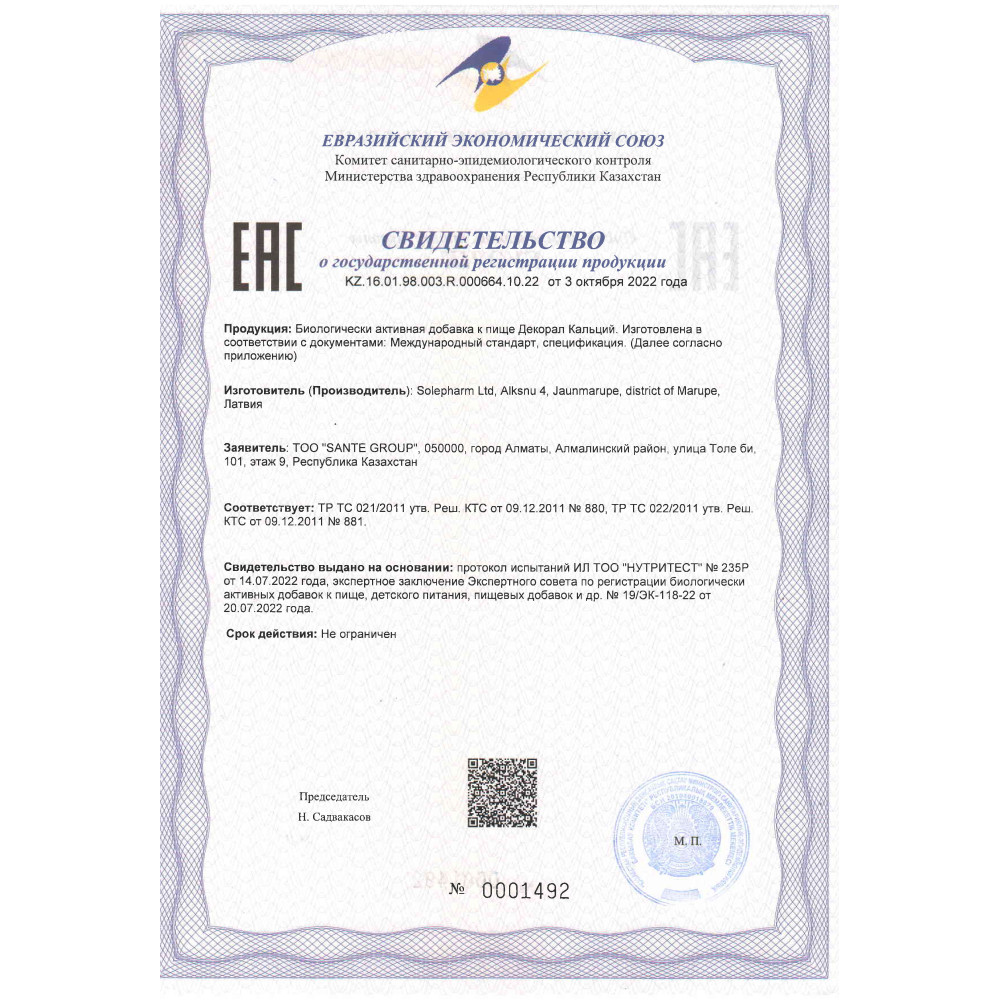 - Номер свидетельства о гос. регистрации: KZ.16.01.98.003.R.000664.10.22 от 03.10.2022 г.